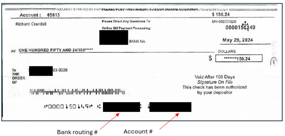 This NCC white paper discusses the risks associated with writing paper checks and provides alternatives for making payments. Writing checks discloses information that can be easily used by bad actors to empty your account. All a forger needs are your bank routing number, name, and checking account number, which are shown on every check you write. We emphasize the importance of treating your checking account number as confidential, and you can inform your bank to eliminate physical check writing as an account feature.